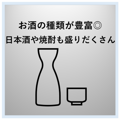 日本酒・焼酎・酎ハイまで、通もうなる酒揃えです♪美味しいお酒を飲みながら盛り上がってくださいね!